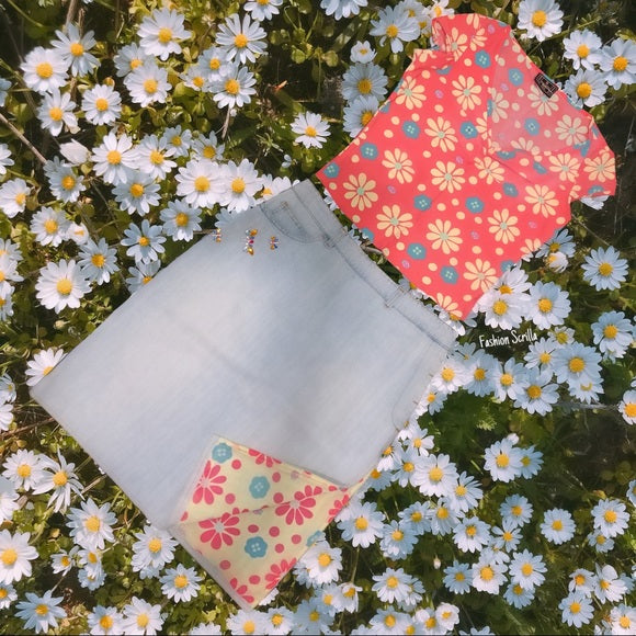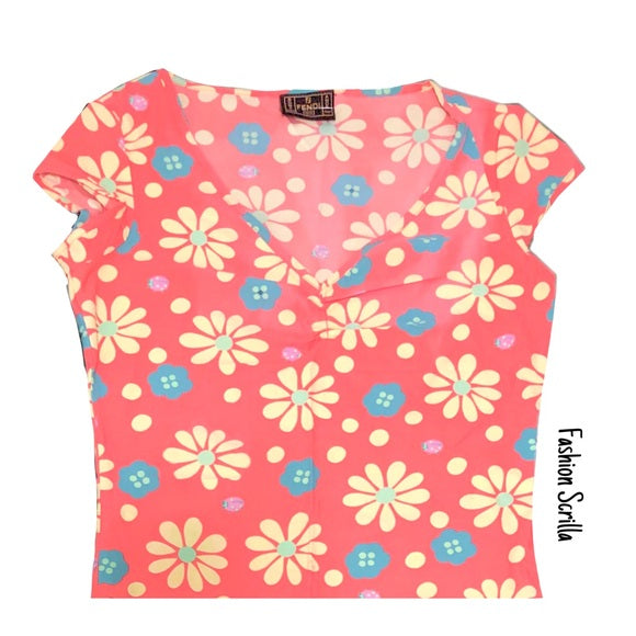 Vintage Fendi Zucca Monogram FF Logo Ladybug Pastel Daisy Floral Top Shirt