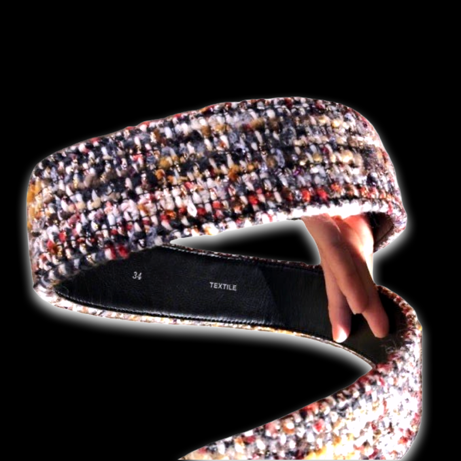 This chic tweed belt is a definite necessity for every cool girls closet! Pairs perfectly with your favorite trousers or over your your favorite coat!
