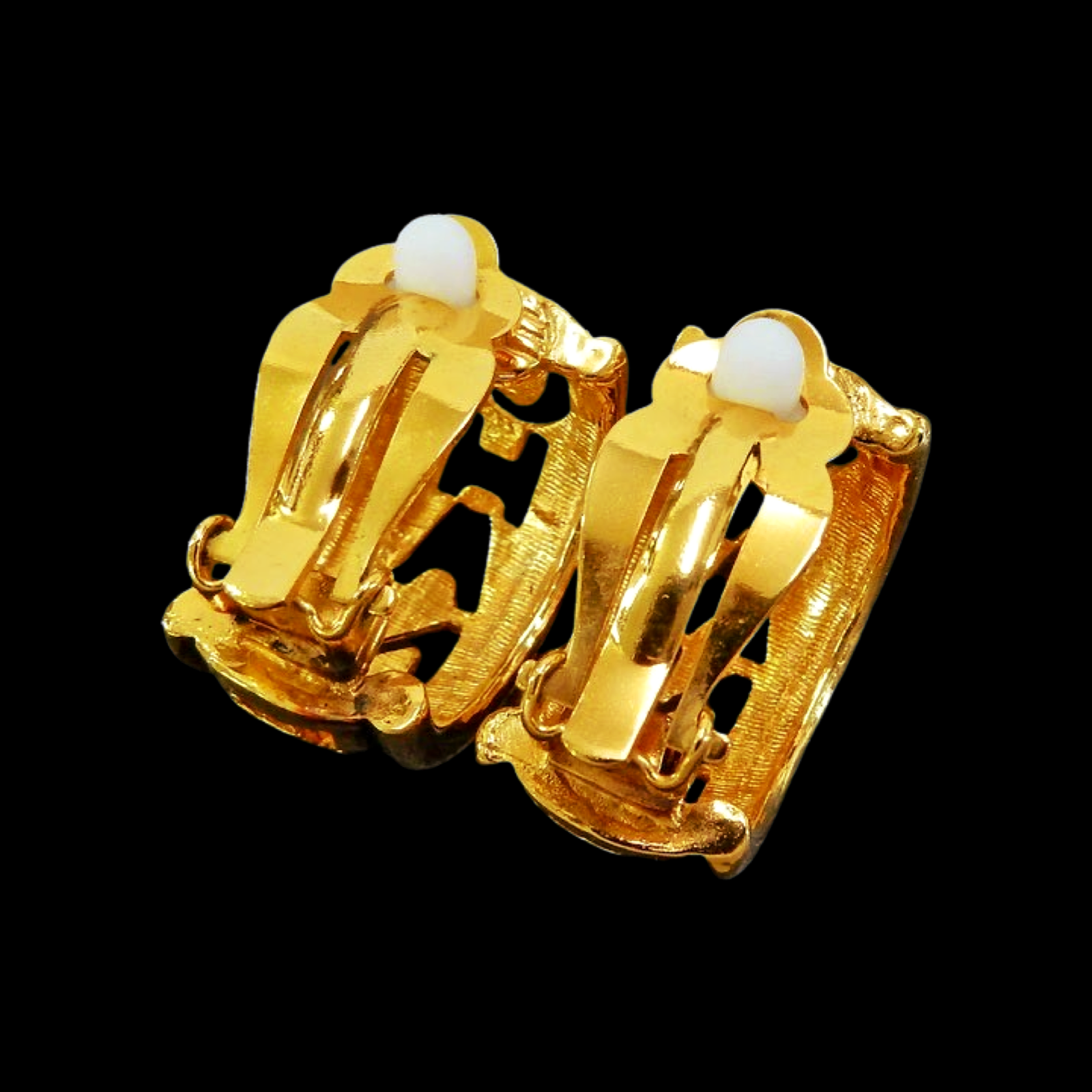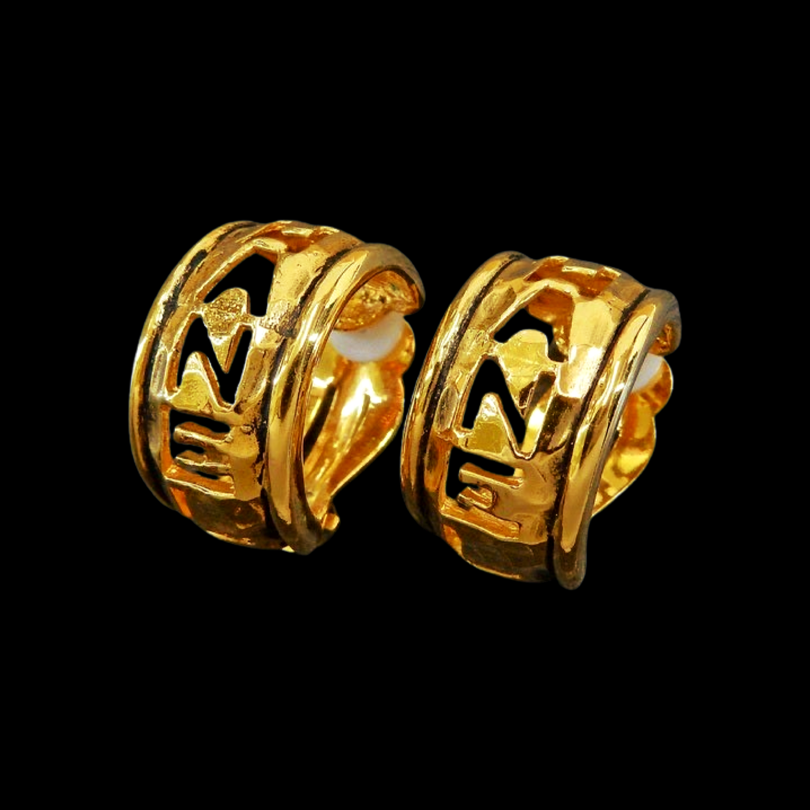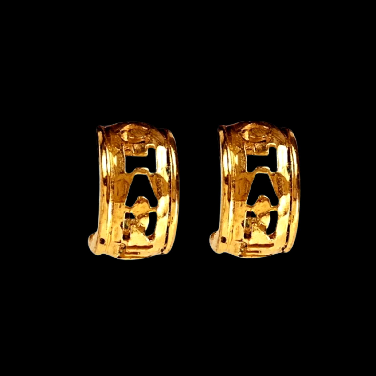 Vintage Chanel Gold Cut Out Logo Clip On Earrings