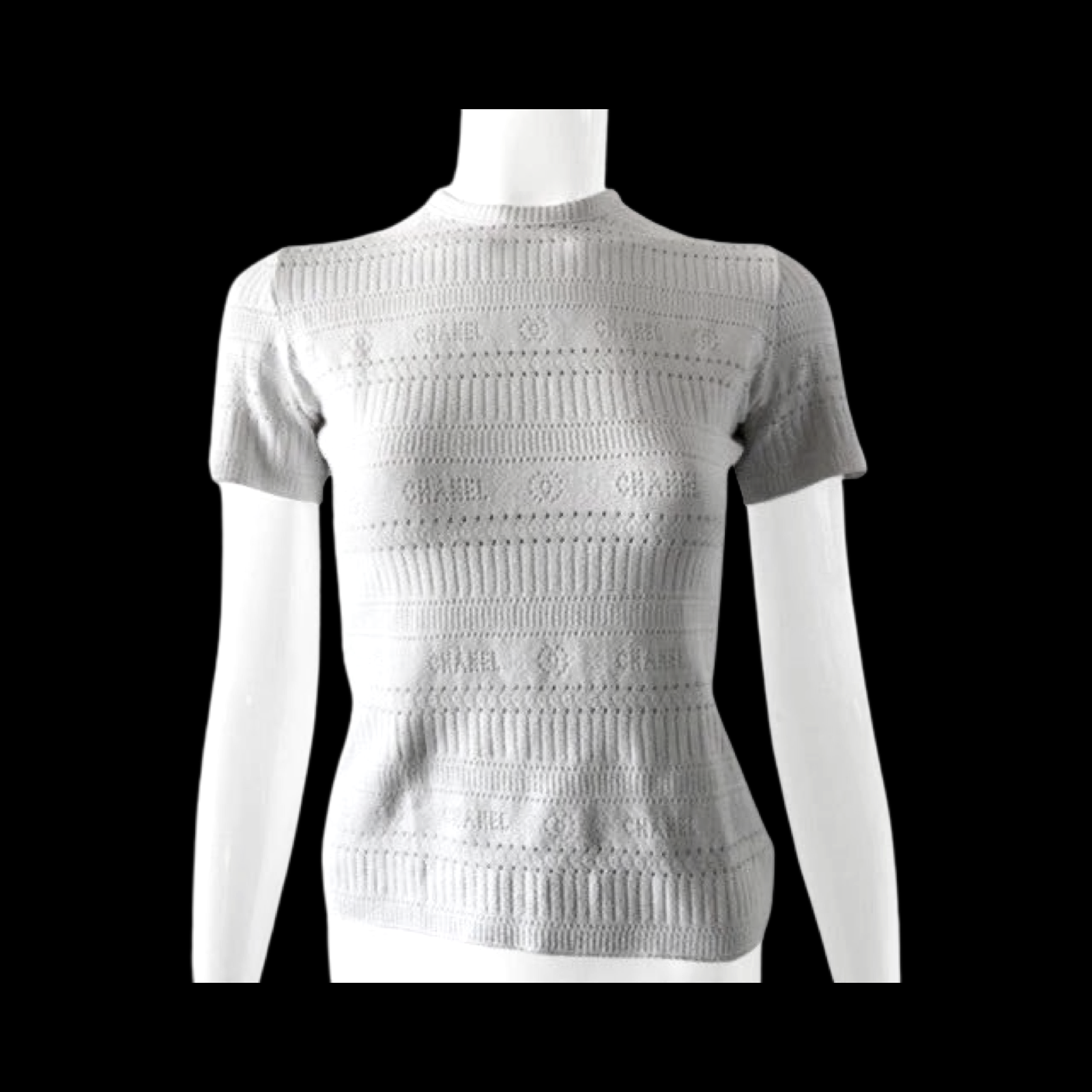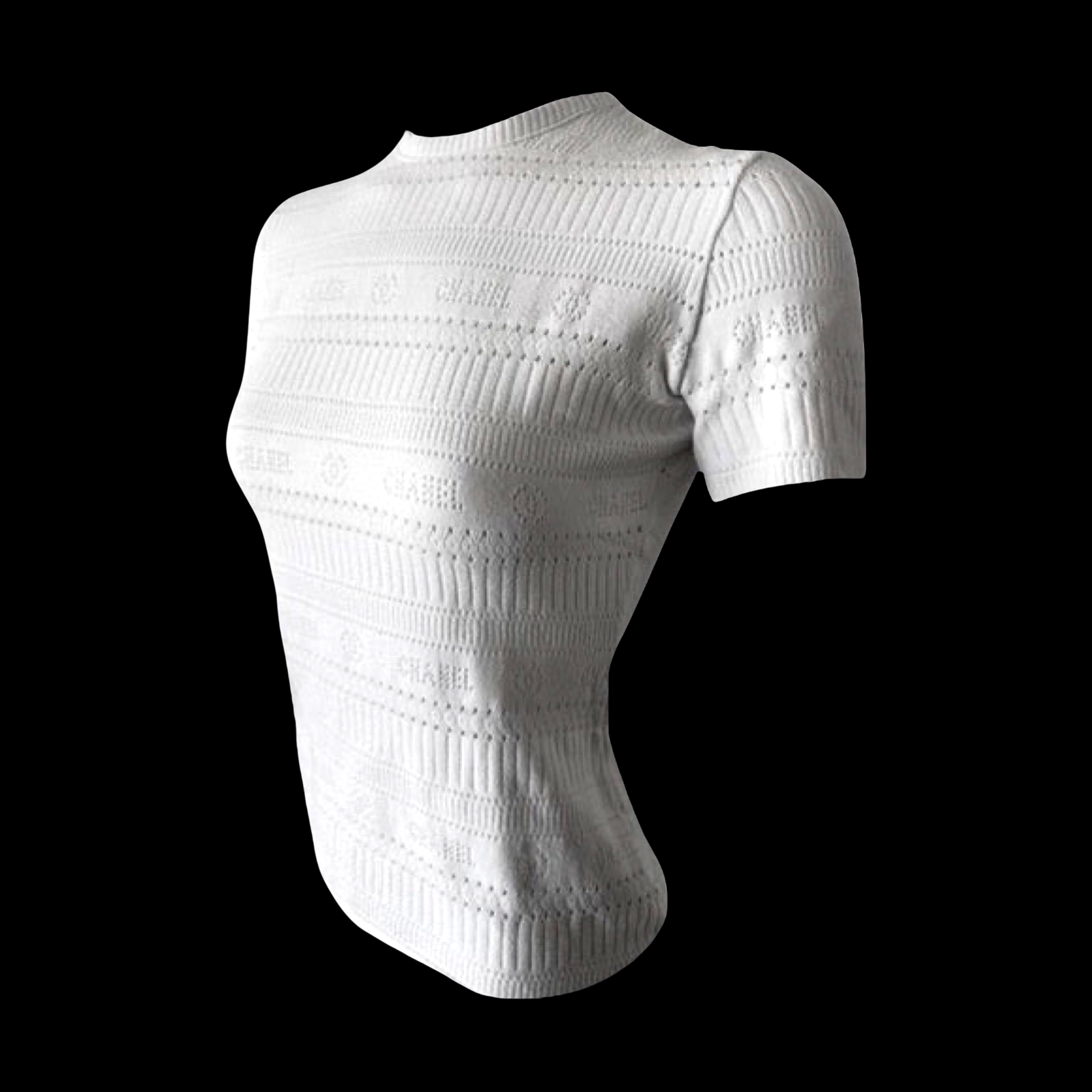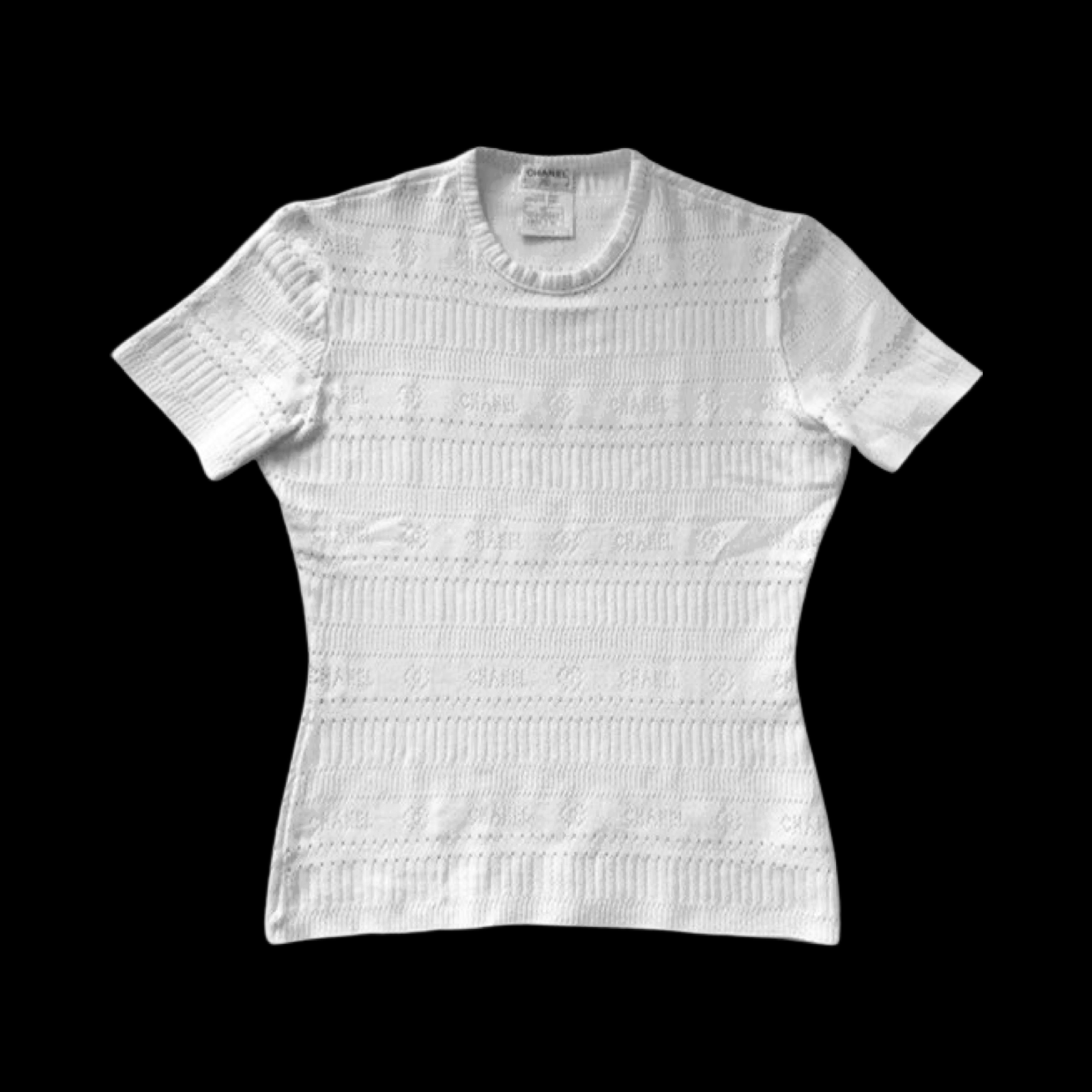 Vintage Chanel Y2K Spelled Out Logo Monogram Knit Short Sleeve Top