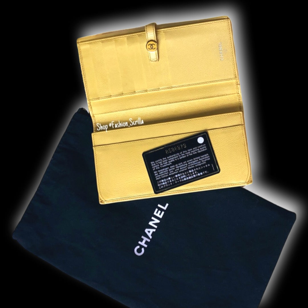 Vintage Chanel Y2K Yellow Caviar Leather Long Wallet