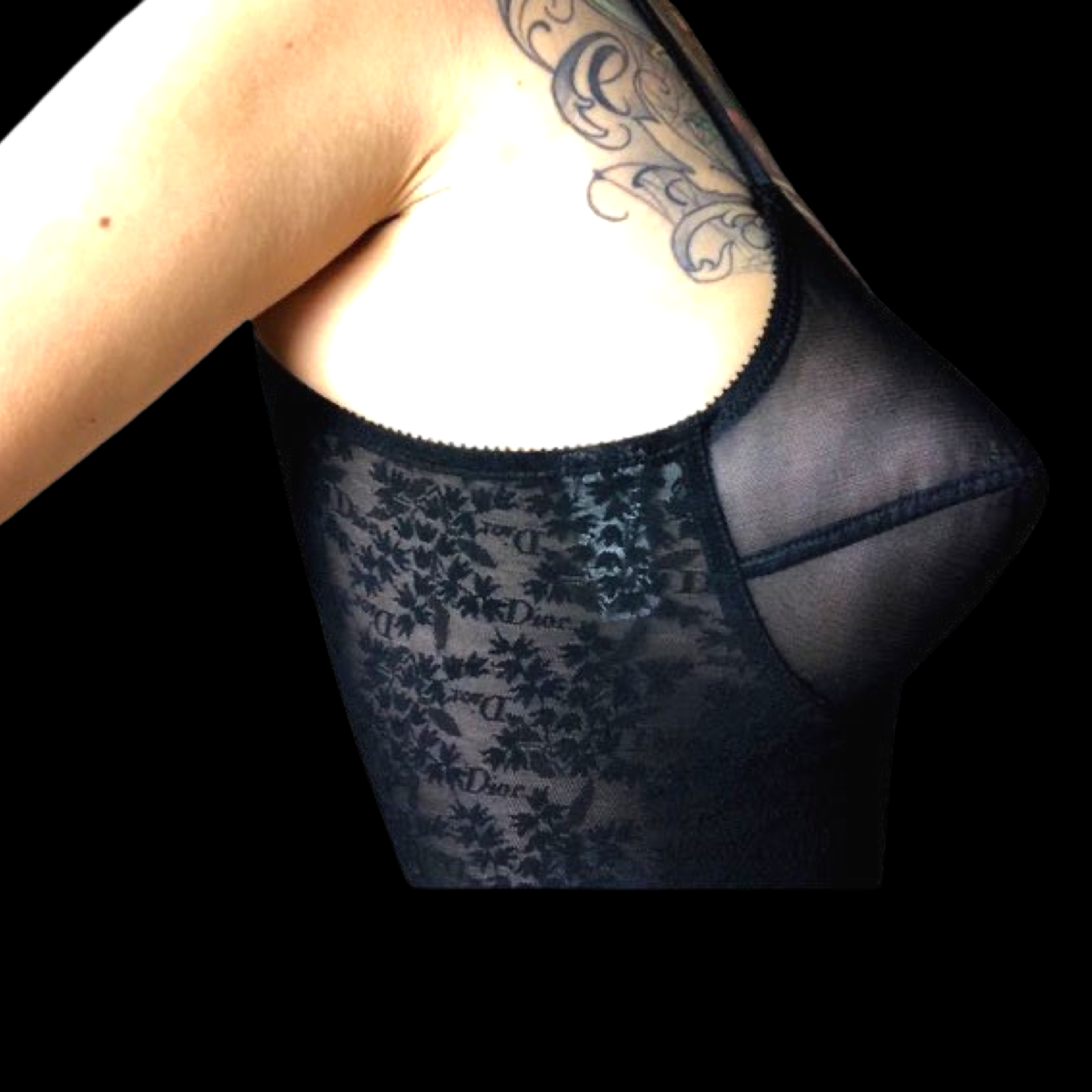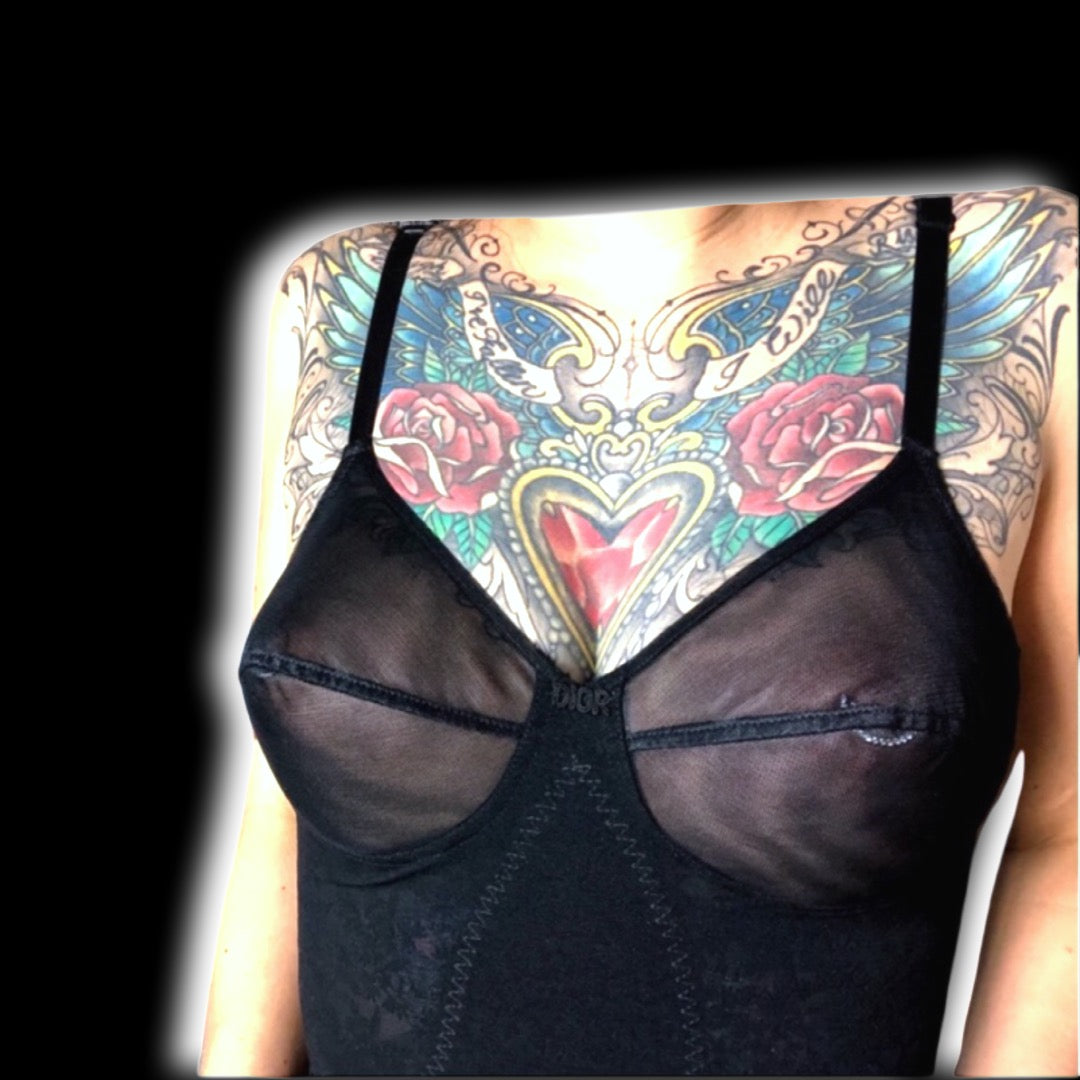 Vintage Christian Dior 70’s Black Floral Monogram Spelled Out Logo Corset Girdle Bodysuit Shapewear Lingerie