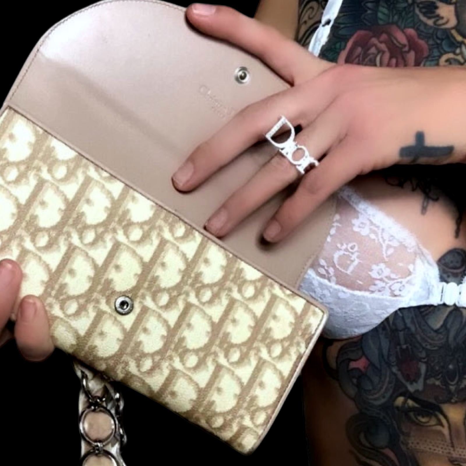 Vintage Christian Dior By John Galliano Beige Oblique Jacquard Monogram Logo Leather Wallet