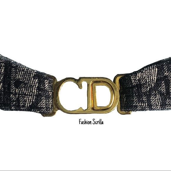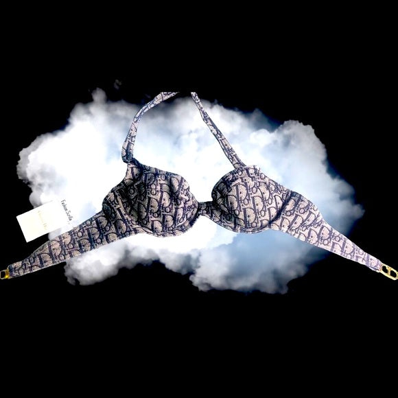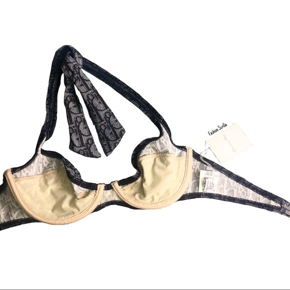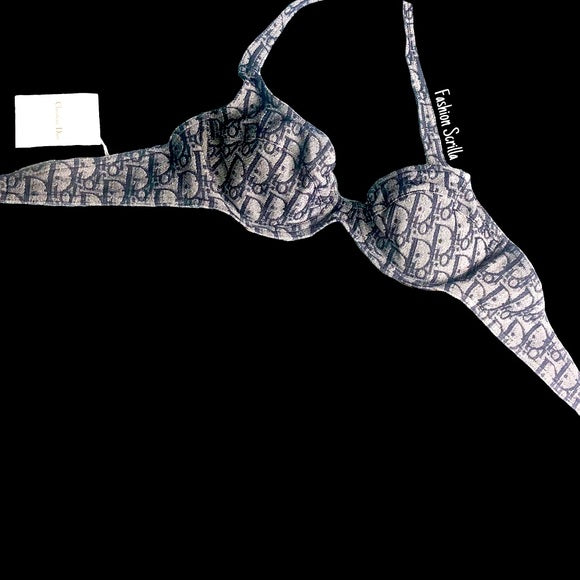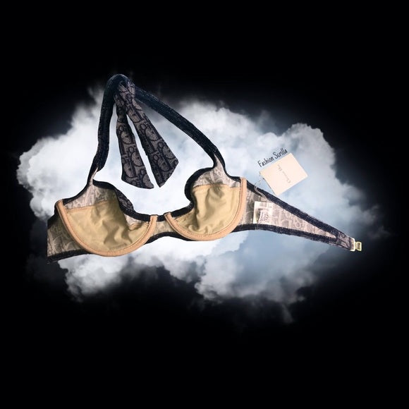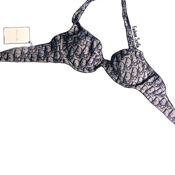 Vintage Christian Dior John Galliano Denim Blue Oblique Jacquard Monogram Bikini Top