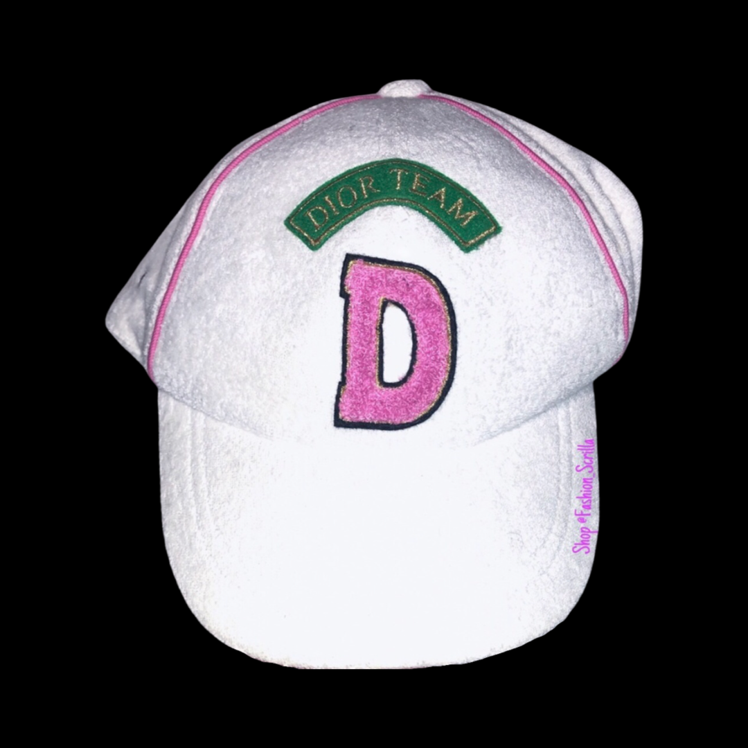 Vintage Christian Dior White Pink Green Logo Baseball Sport Cap Hat
