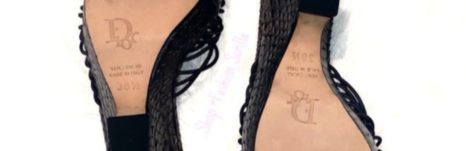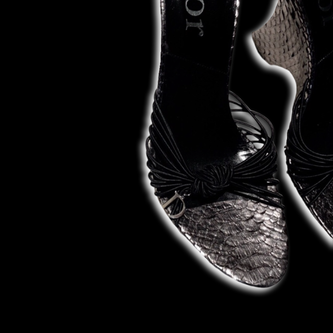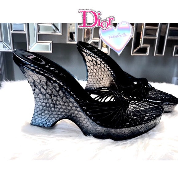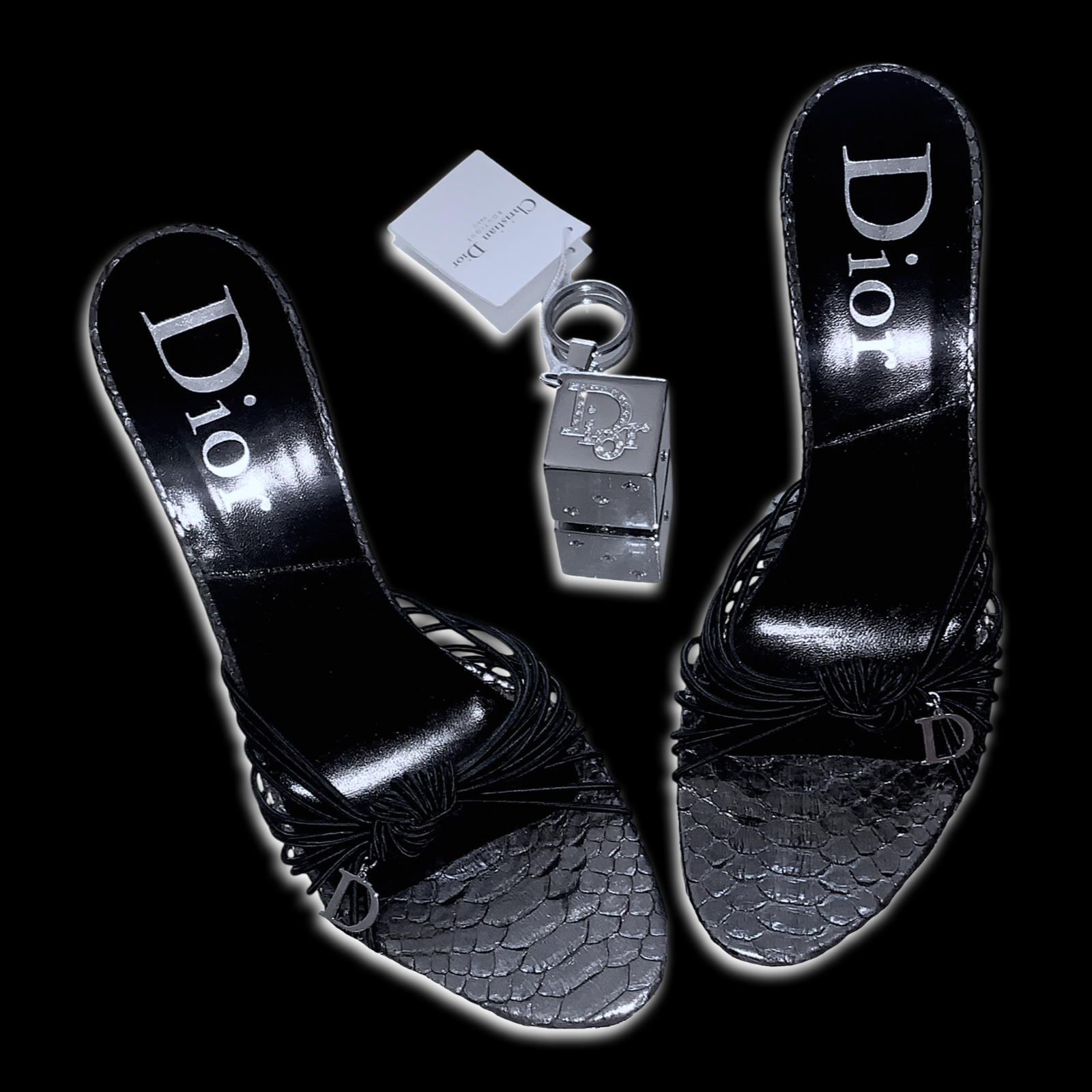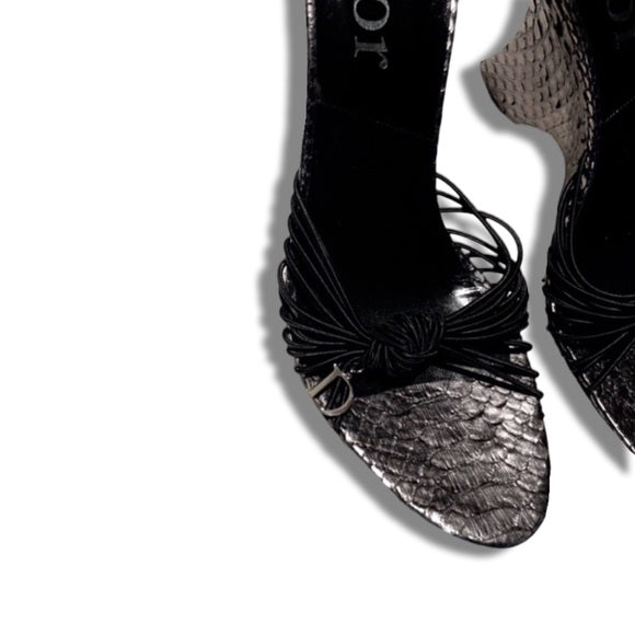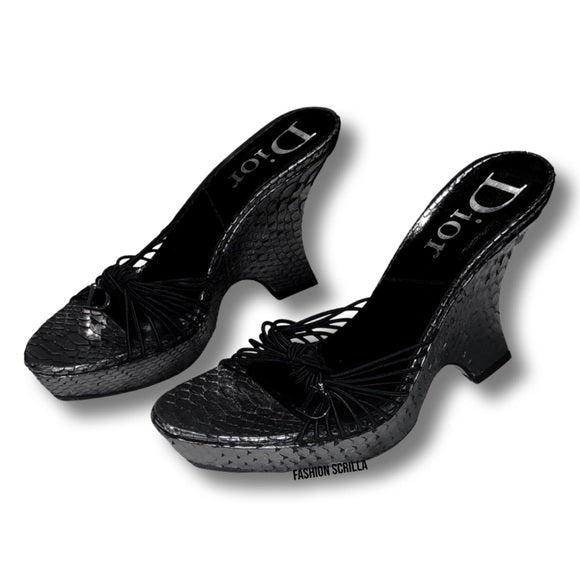 Dior John Galliano Vintage Black Python Embellished Charm Sandal Platform Heels