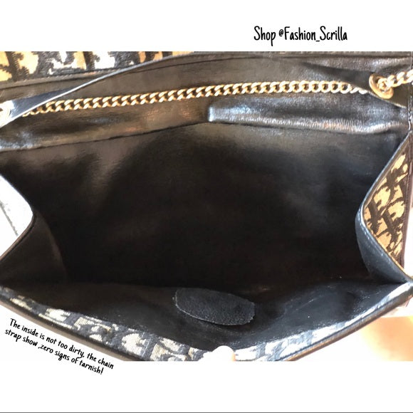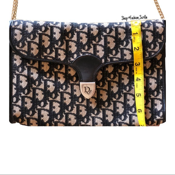 1970s Dior Vintage Blue Oblique Jacquard Monogram Logo Top Flap Chain Strap Bag