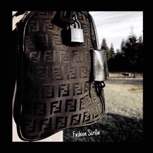 Vintage Fendi Zucca Monogram Logo Black And Silver Bag