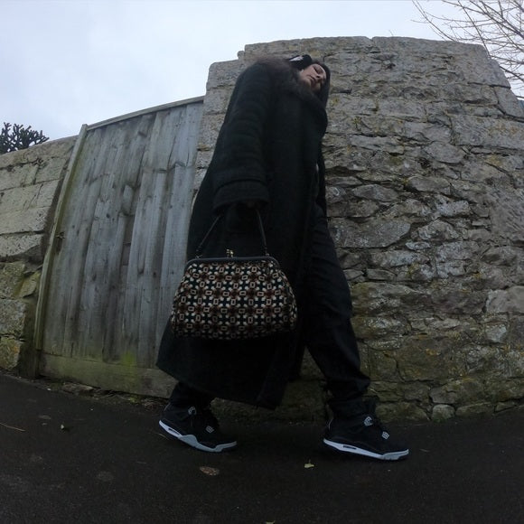 Vintage Fendi Black Zucca Monogram Logo Genuine Sherpa Wool And Suede Long Trench Coat