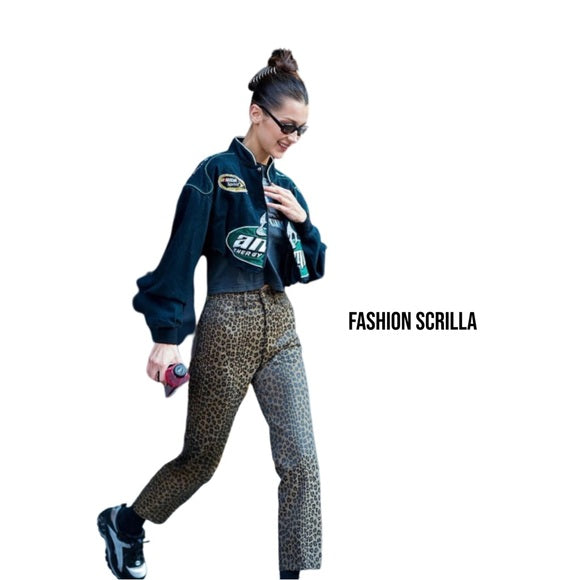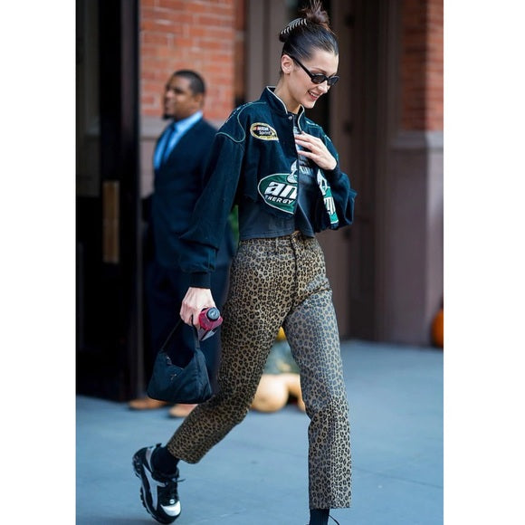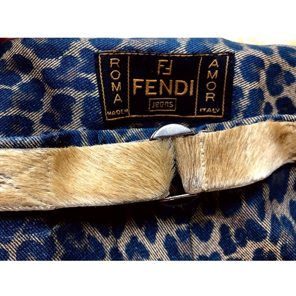 Vintage Fendi Denim Jean Trousers Leopard Print Design With Real Pony Hair Belt