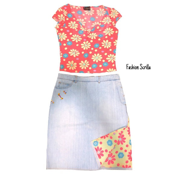 Vintage Fendi Dragonfly Crystal Diamanté Embellished Daisy Floral Design Blue Denim Jean Skirt
