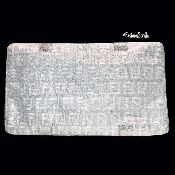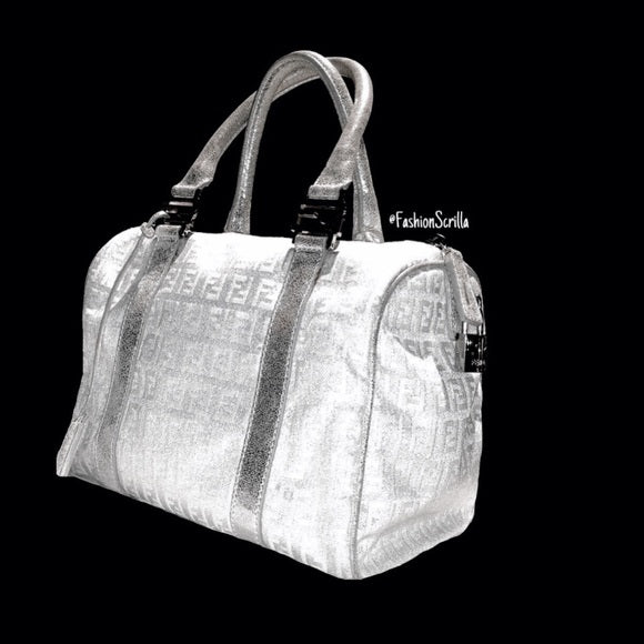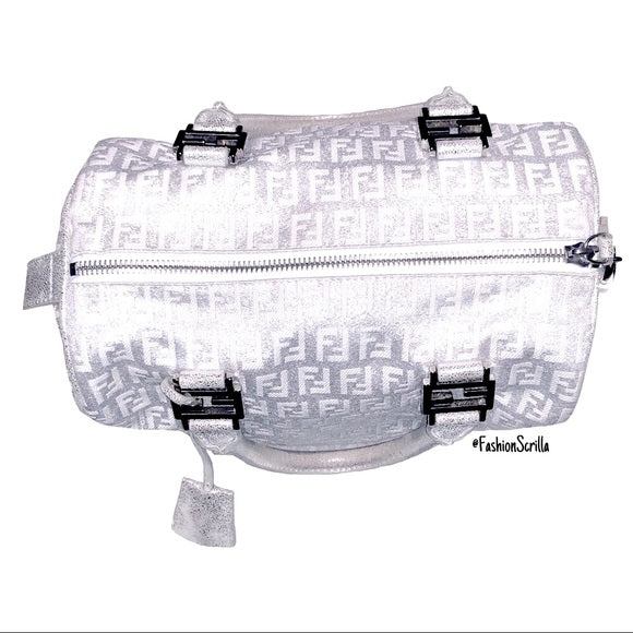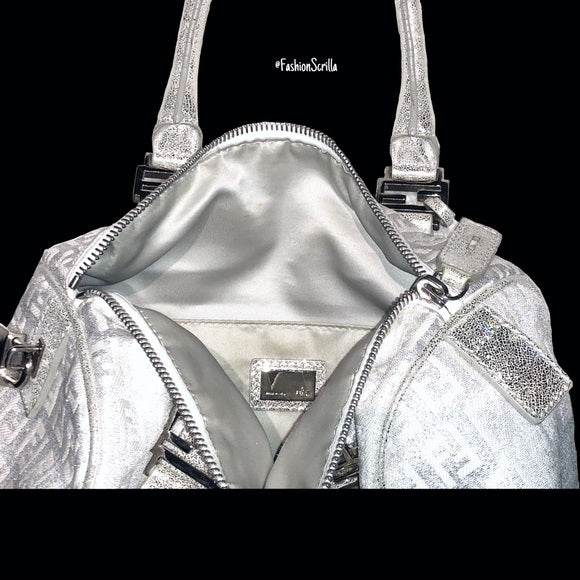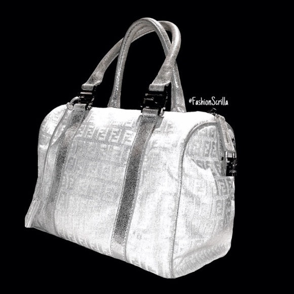 FENDI Vintage Metallic Silver - White Monogram Forever Boston Hand Bag