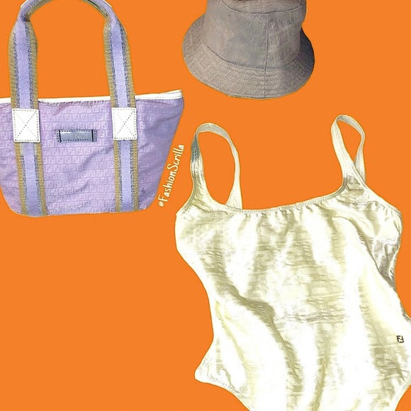Vintage Fendi Zucchino FF Monogram Pastel Lavender Off-White Mini Bag