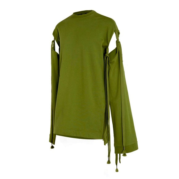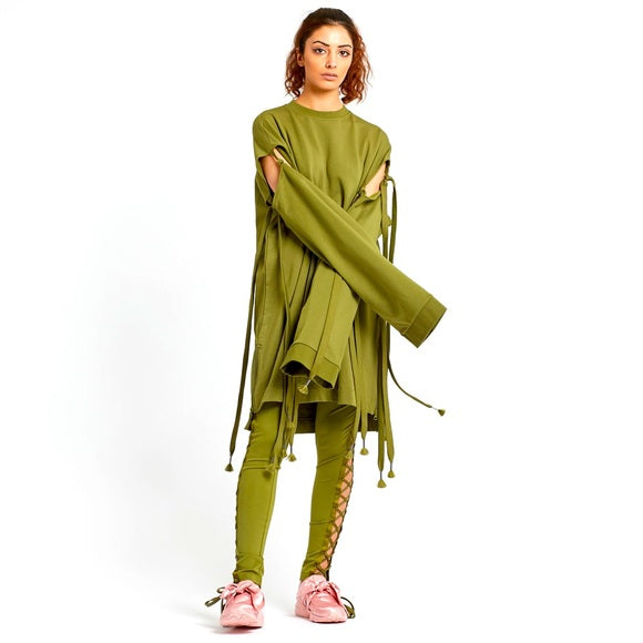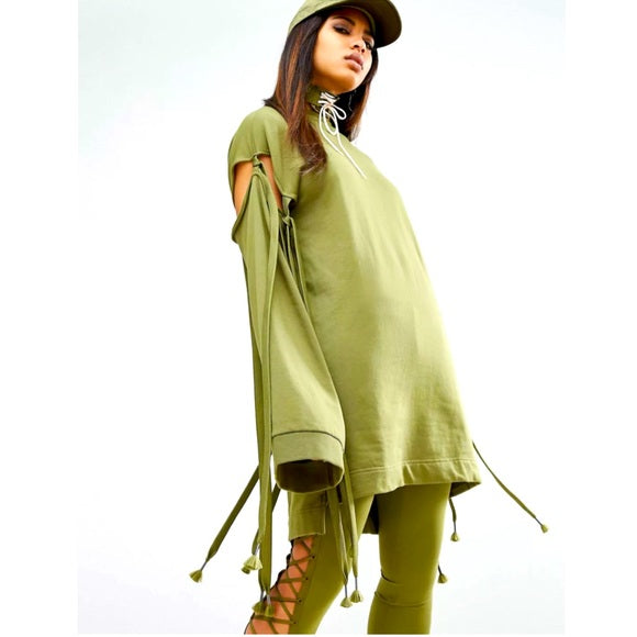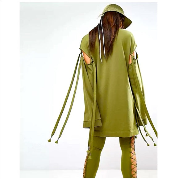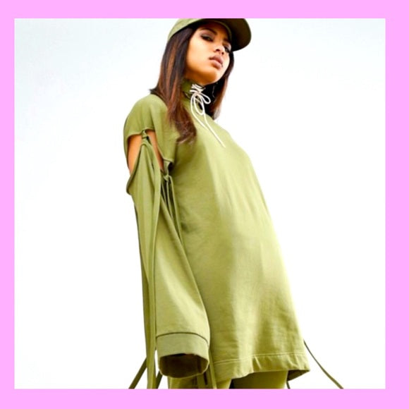 Fenty Puma by Rihanna Runway Green Sleeve Tie Sweatshirt Dress