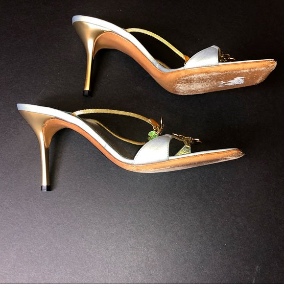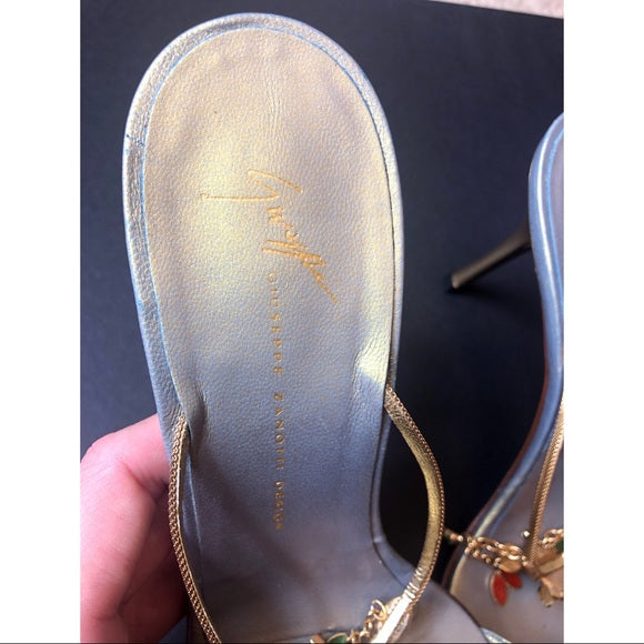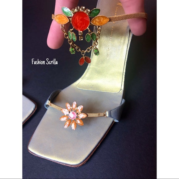 Vintage Giuseppe Zanotti Iridescent flower Chain Strap Square Toe Sandal Heels