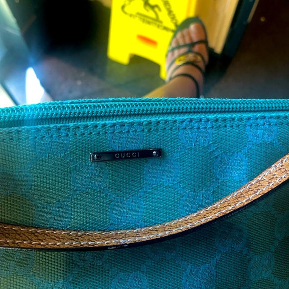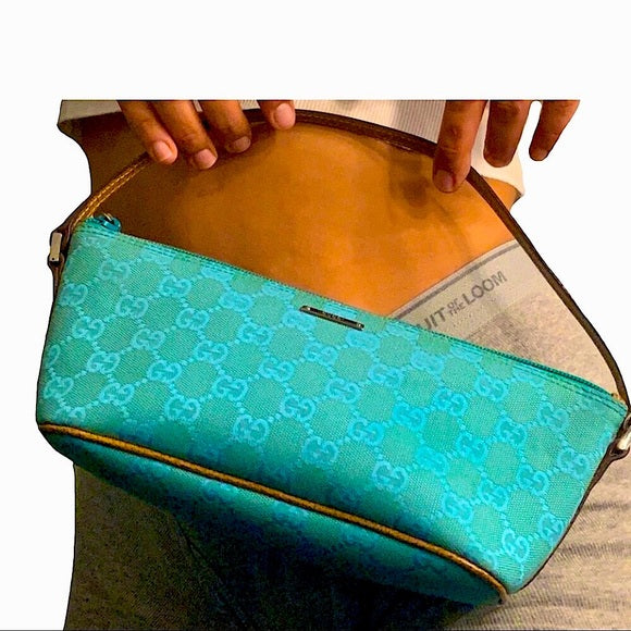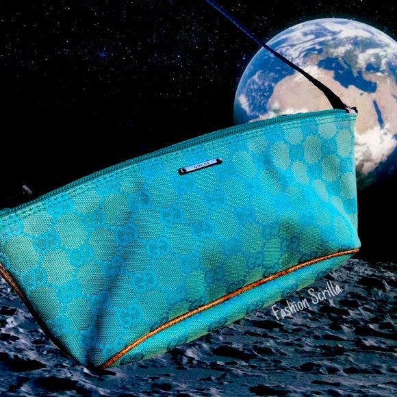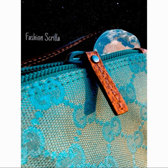 Vintage Gucci By Tom Ford Green Blue Brown Monogram Logo GG Supreme Mini Pochette Boat Bag
