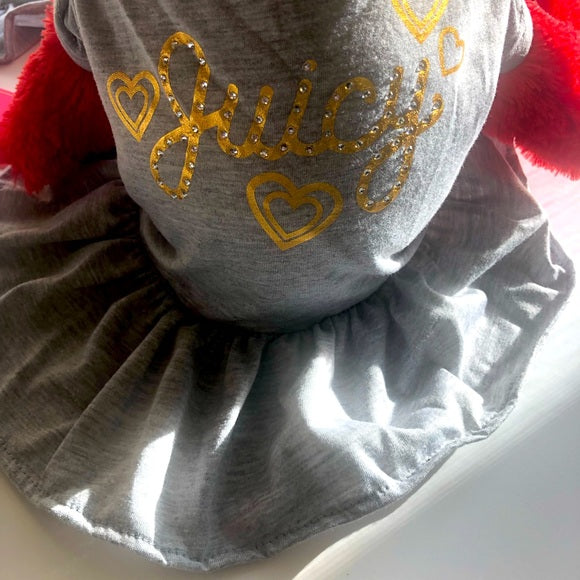 Juicy Couture Luxury Gray Metallic Gold Diamanté Logo Pet Dog Ruffle Mini Dress