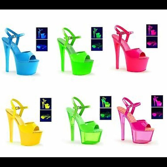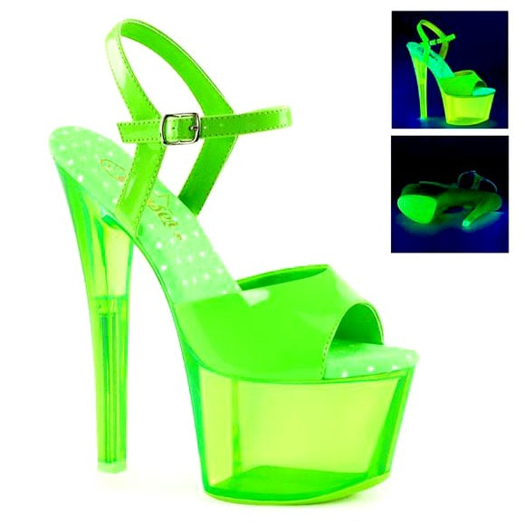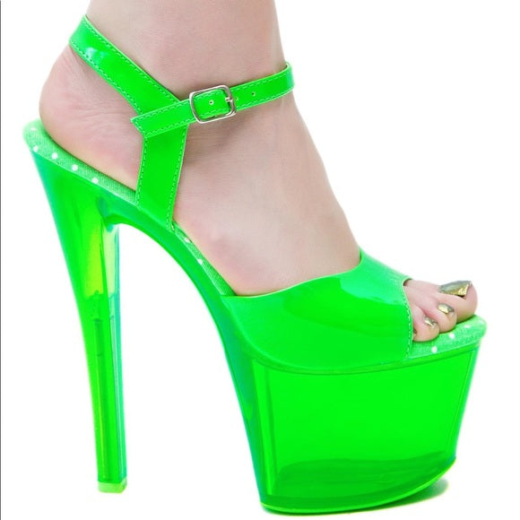 Neon Slime UV Green Ankle Strap Platform Sandal