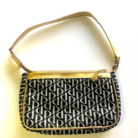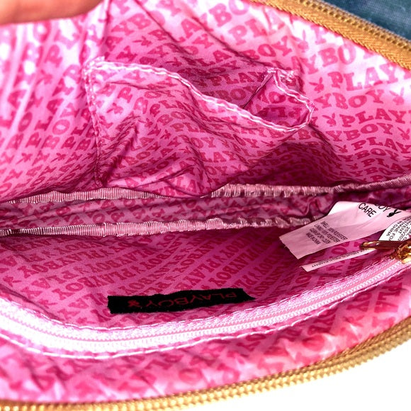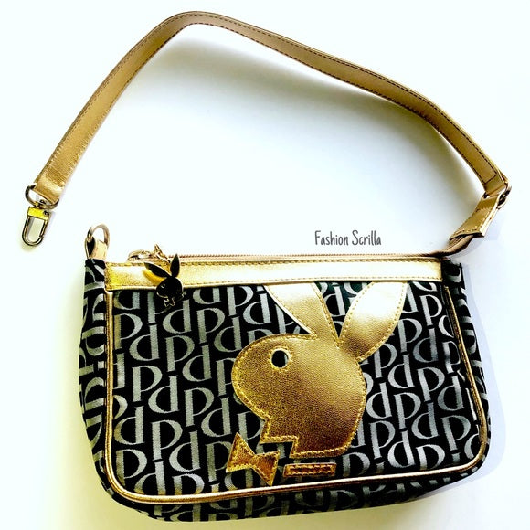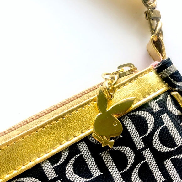 Vintage Playboy Gold Giant Bunny logo Black White Shoulder Bag Convertible Wristlet Mini Hand Bag