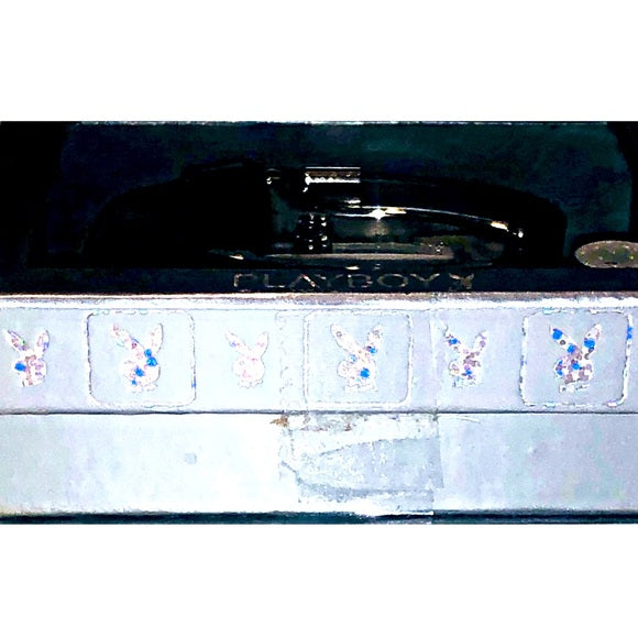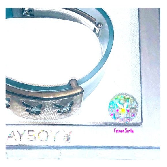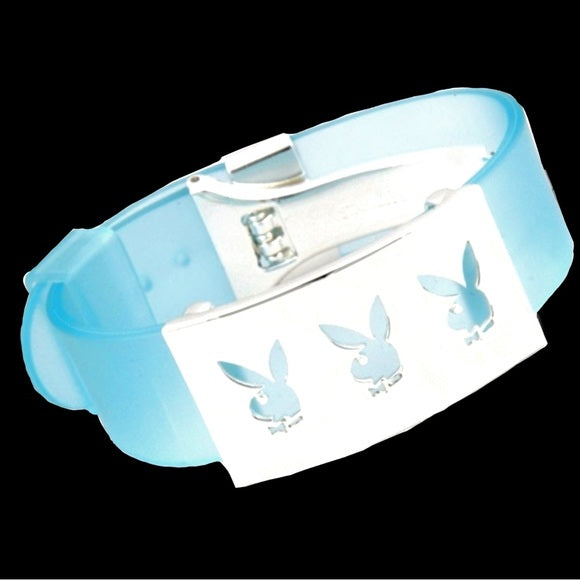 Vintage Playboy Silver Bunny Logo Charm Blue Jelly Cuff Bracelet