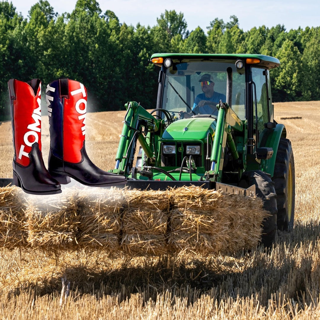 Vintage Tommy Hilfiger Giant Spelled Out Logo Red White and Blue Leather Cowgirl Boots