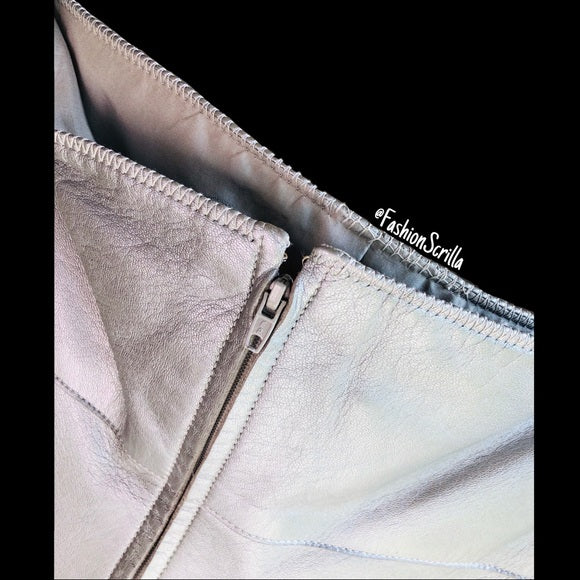 Vintage Chanel 1990's Silver Metallic Chrome Runway Leather Dress