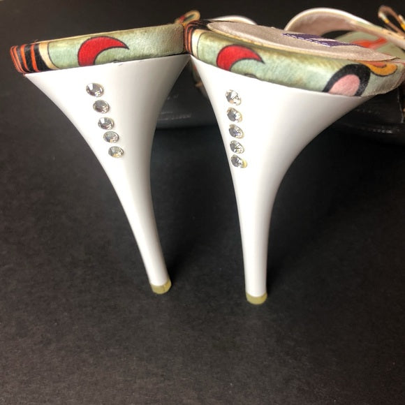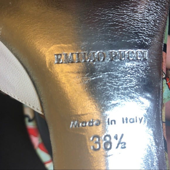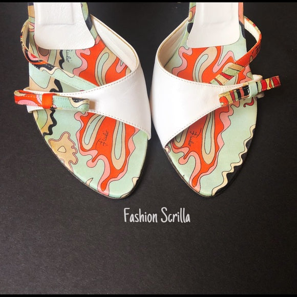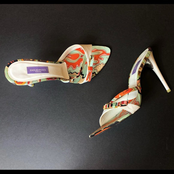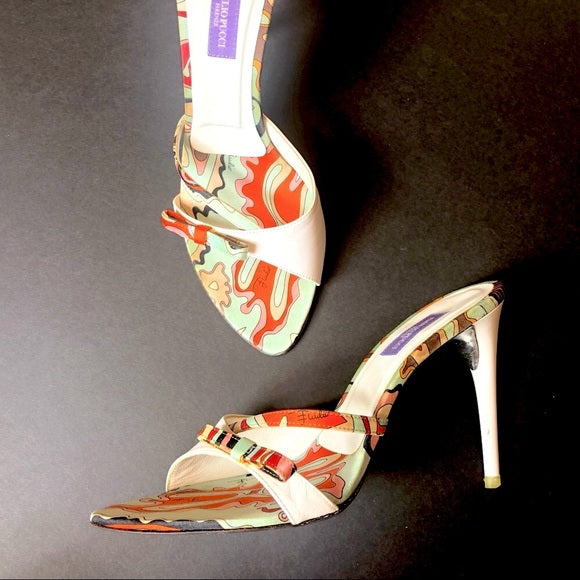 Vintage Emilio Pucci Vintage Orange Mint Off White And Silver Diamanté High Heels
