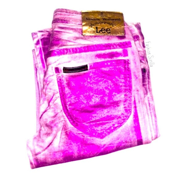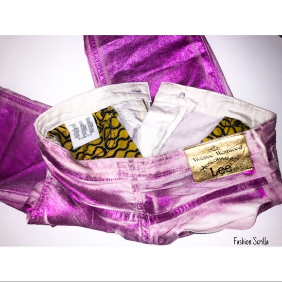 Vintage Vivienne Westwood Archival Runway Metallic Purple And Pink Iridescent Anglomania Lee Denim Trouser Pant Jeans