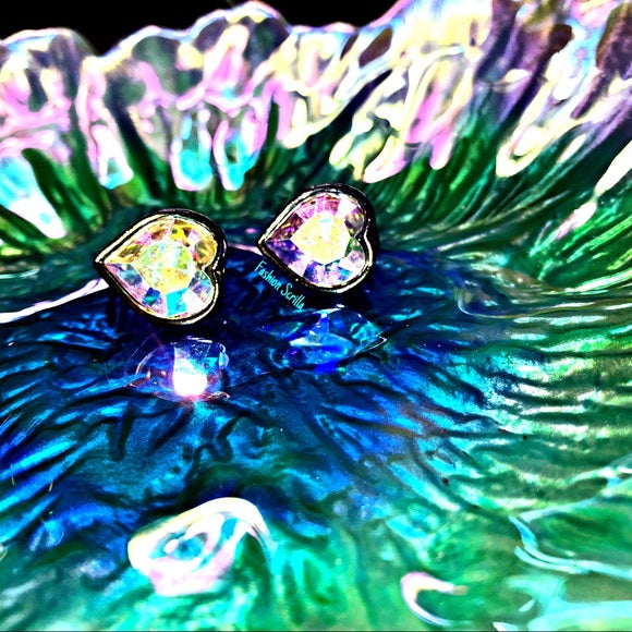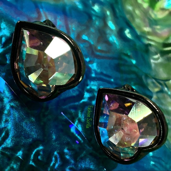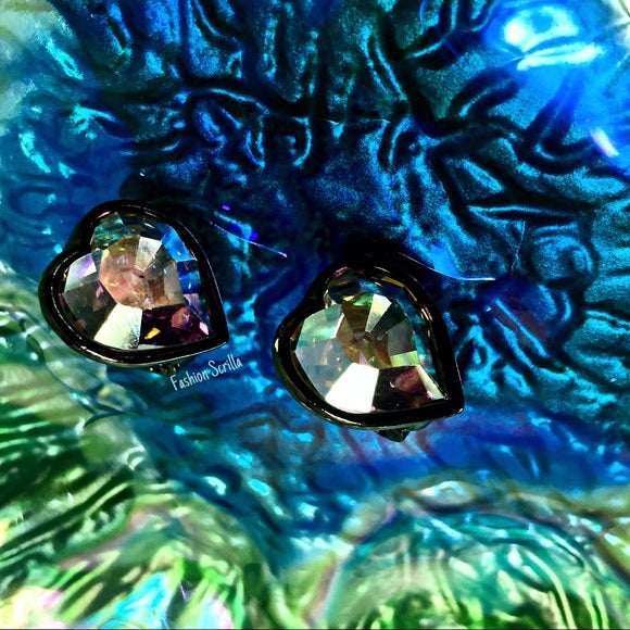 Vintage Yves Saint Laurent Iridescent Gripoix Aurora Borealis Crystal Heart Earrings