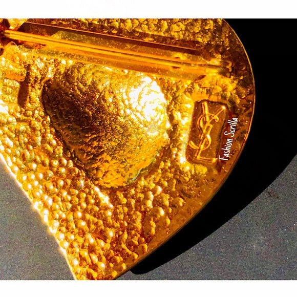 Vintage Yves Saint Laurent Gold Heart Logo Collectible Brooch Pin